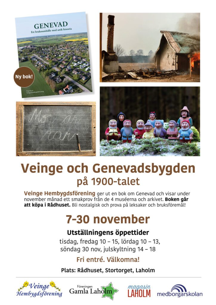 Veinge Hembygdsförening ger ut en bok om Genevad och visar ett smakprov från de fyra muséerna och arkivet. Utställningen pågår 7–30 november.